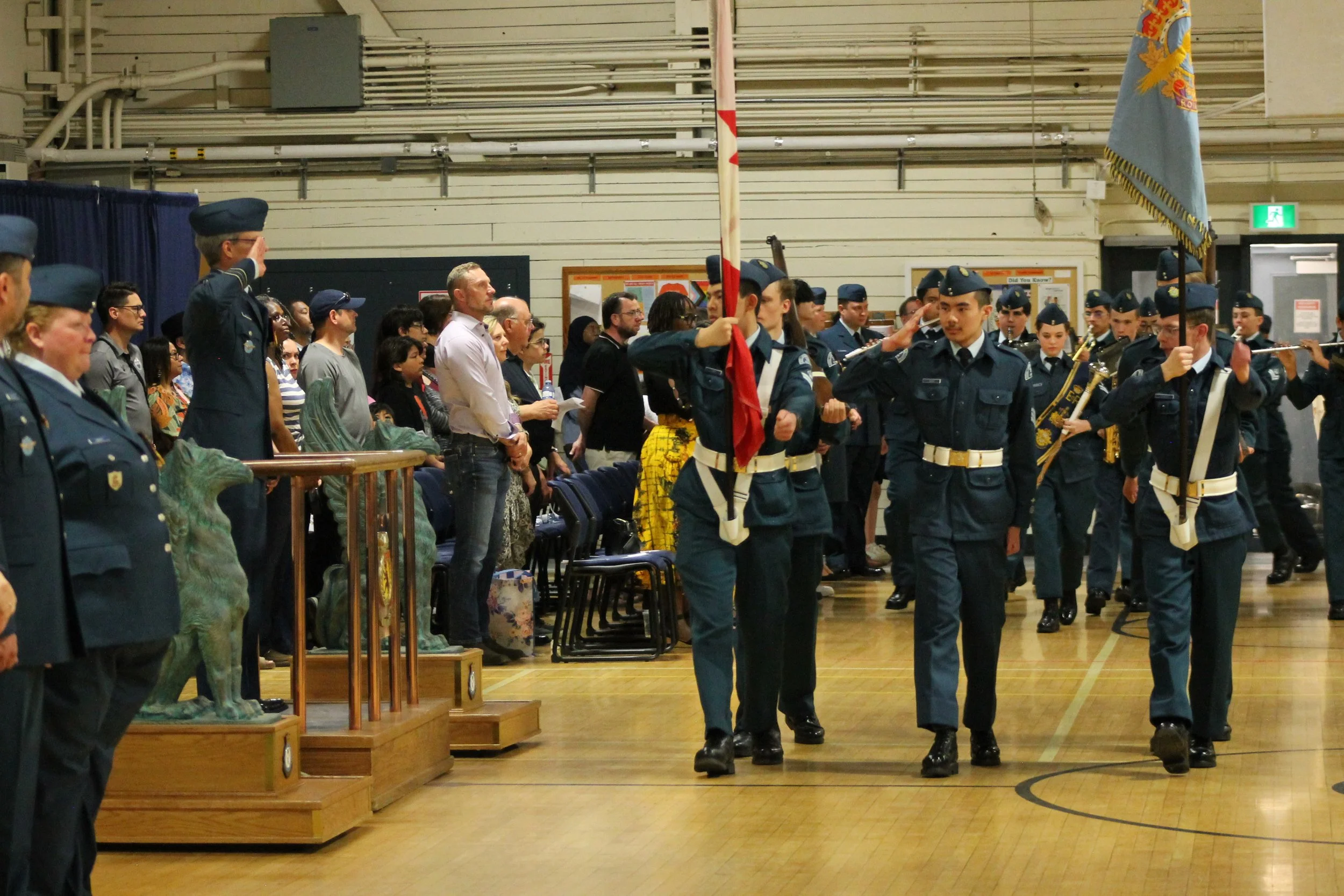 Air Cadets receive training in flying and gliding, survival skills, physical fitness, public speaking, citizenship, and precision drill. The majority of cadet training takes place at the local squadron during the regular school year, with a percentage of cadets selected for summer training courses at various cadet summer training centres located across Canada. 395 Squadron has a long and proud history since formation in 1946 of developing in youth the attributes of good citizenship and leadership; promoting physical fitness; and stimulating the interest of youth in the sea, land, and air activities of the Canadian Forces.